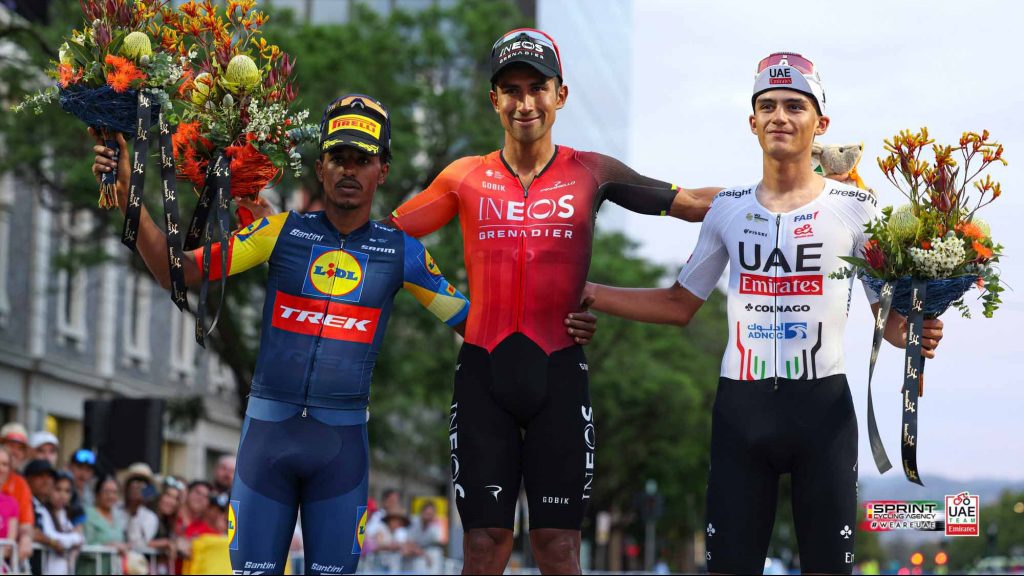 El ecuatoriano superó al eritreo Natnael Tesfatsion (Lidl Trek) y al mexicano Isaac del Toro (UAE Team Emirates), quien tuvo un brillante debut, tras ganar el último Tour del Porvenir y convertirse ahora en uno de los grandes animadores del Clásico Down Under.