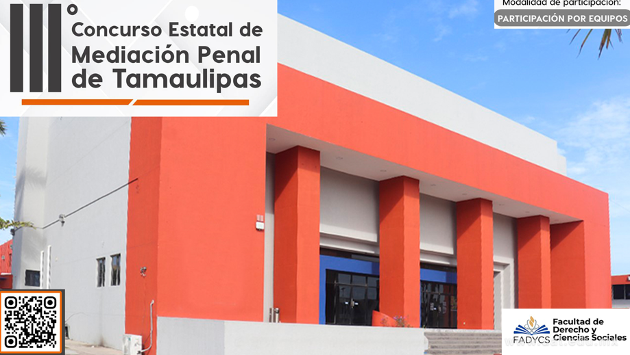 Tampico, Tamaulipas.- La Universidad Autónoma de Tamaulipas (UAT), a través de la Facultad de Derecho y Ciencias Sociales de Tampico, invita a estudiantes de licenciatura en Derecho y carreras afines en el estado a participar en el Tercer Concurso Estatal de Mediación Penal de Tamaulipas.