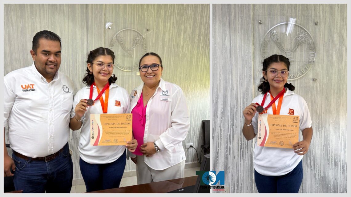 A través de sus redes sociales, el rector de la UAT, Dámaso Anaya Alvarado, felicitó a María José, alumna del segundo semestre de la Escuela Preparatoria Mante, por su excelente rendimiento académico que le permitió obtener la medalla de bronce en esta competencia nacional.