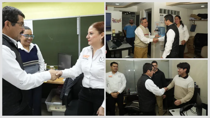 El rector Dámaso Anaya visitó distintas direcciones, secretarías y áreas operativas de la administración central, donde saludó al personal universitario y constató la reanudación de las funciones y procesos internos previo al arranque del ciclo escolar 2026-I de esta casa de estudios.