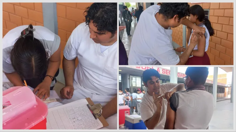 La subdirectora de ésta secundaria, maestra María del Roble Montes Moreno, dijo que la brigada médica aplicó vacunas a los estudiantes contra el virus de sarampión, tétanos, neumococo, rubéola e influenza.