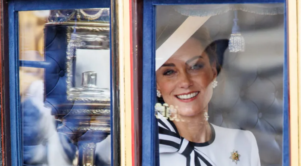La princesa Kate participó en el saludo a la multitud desde el balcón del Palacio de Buckingham junto al resto de la familia real, uno de los actos más icónicos de la realeza británica, en su primera aparición en público tras haber sido diagnosticada de cáncer.