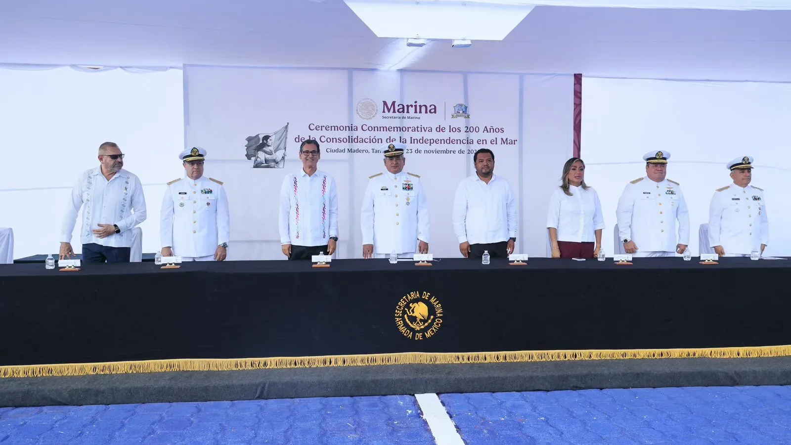 Madero, Tamaulipas.- La Primera Zona Naval conmemoró este viernes el 200 aniversario de la Consolidación de la Independencia en el Mar, ceremonia realizada en el marco del Día de la Armada de México, que se celebra cada 23 de noviembre.