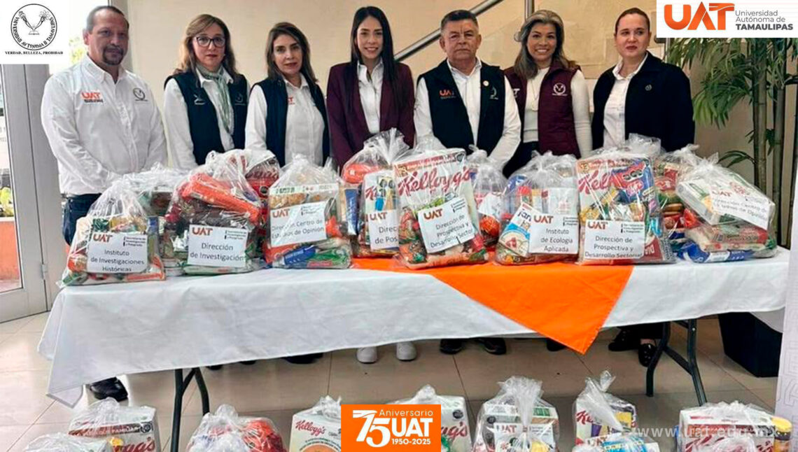 Ciudad Victoria, Tamaulipas.- La Universidad Autónoma de Tamaulipas (UAT) culminó con éxito la Colecta de Víveres “Abrigando Corazones”, una acción altruista organizada por la coordinación de Familia UAT en colaboración con la Dirección de Humanismo Social.