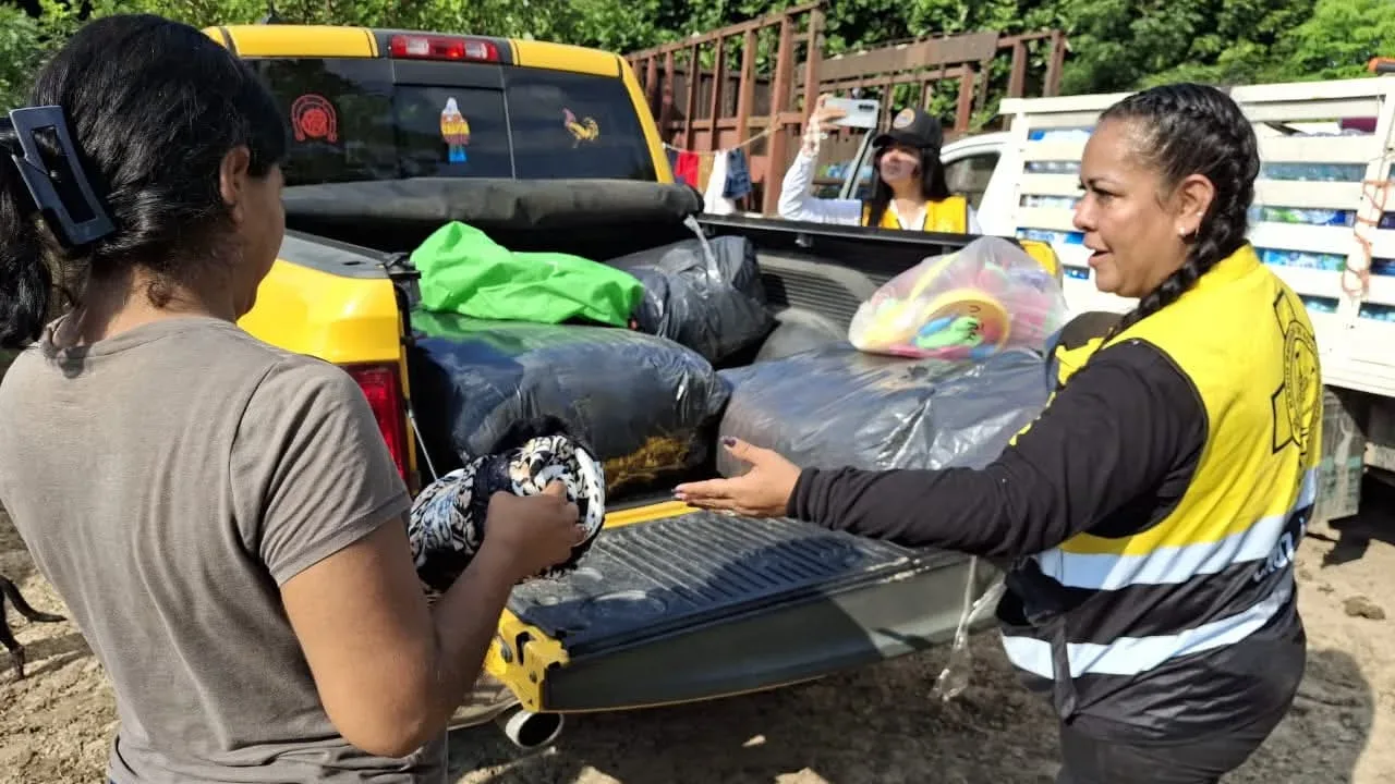 Los donativos incluyeron alimentos no perecederos, agua embotellada, medicamentos, artículos de limpieza, ropa y herramientas como palas y escobas para apoyar las labores de saneamiento en los hogares afectados.