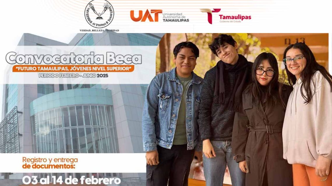 Ciudad Victoria, Tamaulipas.- La Universidad Autónoma de Tamaulipas (UAT) hace un llamado a su comunidad estudiantil a participar en la convocatoria de la Beca “Futuro Tamaulipas, Jóvenes de Nivel Superior” para el periodo febrero-junio 2025, emitida por el Gobierno del Estado a través de la Secretaría de Educación y el Instituto Tamaulipeco de Becas, Estímulos y Créditos Educativos (ITABEC).