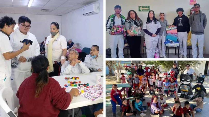 Matamoros, Tamaulipas.- En ese sentido, la institución universitaria programó una serie de acciones solidarias que mejoran la calidad de vida de niñas, niños, jóvenes y adultos mayores de la región, consolidando a la UAT como un agente activo de transformación social que promueve un entorno más justo, empático y saludable.