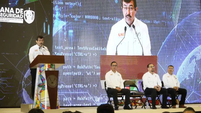 La Séptima Semana de Ciberseguridad de la UAT se desarrolla bajo el lema “La seguridad digital evoluciona con la I.A. ¿Estás listo?”. A lo largo de esta semana de actividades, que se extenderá hasta el 24 de octubre, se llevarán a cabo más de veinte conferencias y talleres especializados sobre temas como inteligencia artificial, ética digital, ciberdefensa, protección de datos, ransomware y neuroderechos, impartidos por especialistas de organizaciones como Microsoft, Huawei, Lenovo, Check Point, entre otras.
