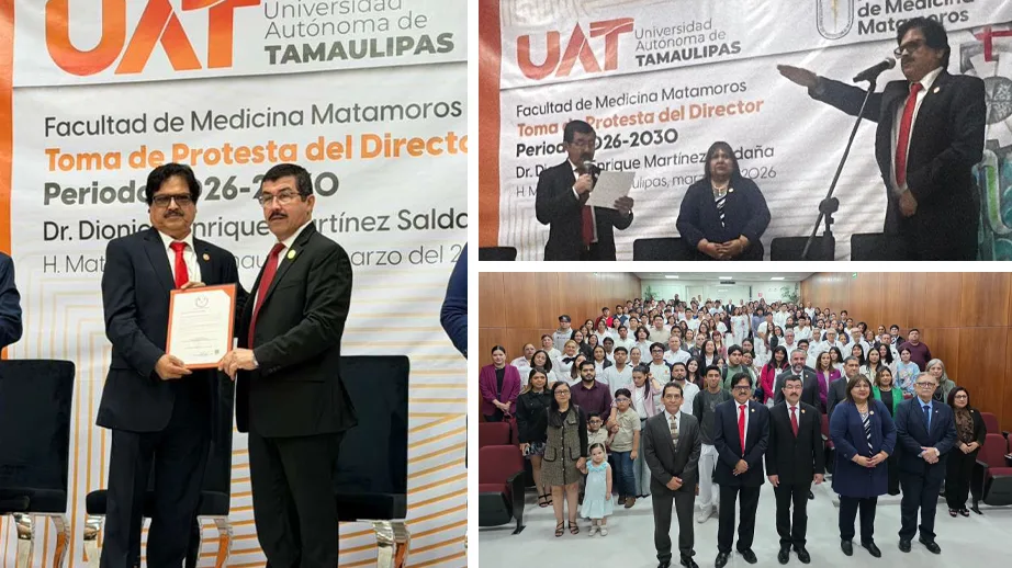 Reiterando el compromiso de fortalecer la calidad educativa y consolidar el liderazgo institucional, el rector de la Universidad Autónoma de Tamaulipas (UAT), Dámaso Anaya Alvarado, encabezó la toma de protesta del Dr. Dionisio Enrique Martínez Saldaña como director de la Facultad de Medicina Matamoros para el periodo 2026-2030.