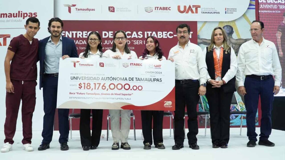 Ciudad Victoria, Tamaulipas.- En reconocimiento a su esfuerzo académico, más de nueve mil estudiantes de la Universidad Autónoma de Tamaulipas recibieron la beca ITABEC-UAT “Futuro Tamaulipas, Jóvenes de Nivel Superior” en una ceremonia que encabezó el rector de la máxima casa de estudios de la entidad, MVZ Dámaso Anaya Alvarado.
