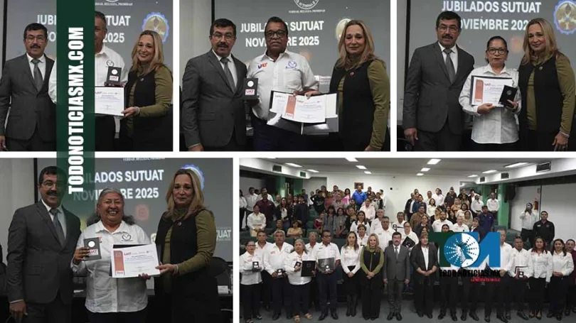 Ciudad Victoria, Tamaulipas.- El rector Dámaso Anaya Alvarado presidió la entrega de reconocimientos a las y los jubilados del Sindicato Único de Trabajadores de la Universidad Autónoma de Tamaulipas (SUTUAT), a quienes agradeció por todos los años de esfuerzo y dedicación al servicio de la casa de estudios.