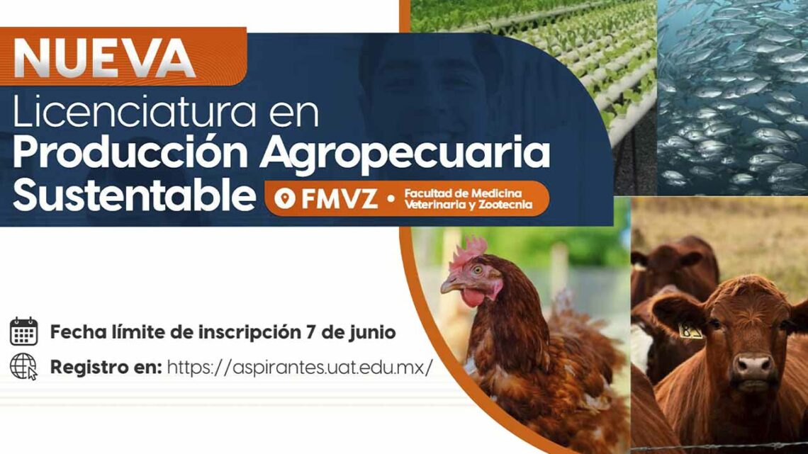 Ciudad Victoria, Tamaulipas.-La Universidad Autónoma de Tamaulipas ofrece para el próximo ciclo escolar universitario 2024-3 (periodo de otoño) la nueva Licenciatura en Producción Agropecuaria Sustentable, que impartirá la Facultad de Medicina Veterinaria y Zootecnia Dr. Norberto Treviño Zapata (FMVZ UAT).