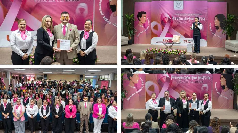 Esta actividad forma parte de la serie de eventos que la UAT organiza durante el mes de octubre en sus diferentes dependencias, con el propósito de fomentar la conciencia sobre la detección temprana del cáncer de mama y reforzar el compromiso institucional con la salud integral y el bienestar de su comunidad universitaria.