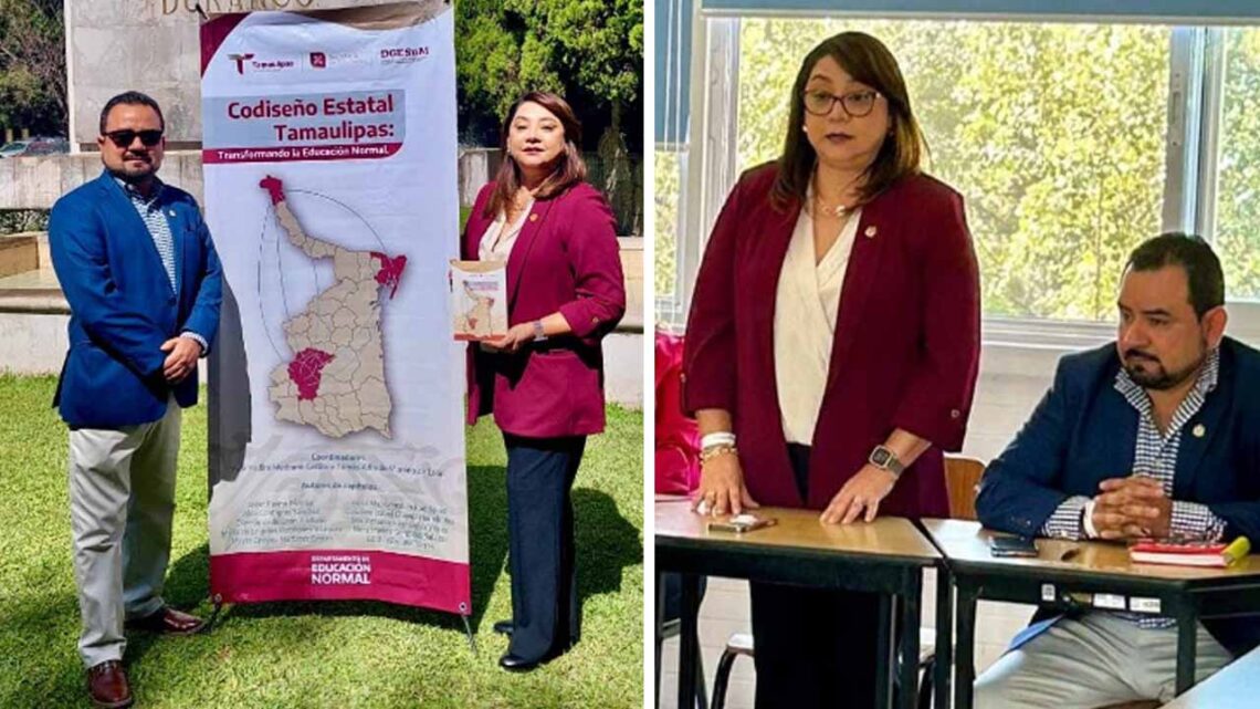 Matamoros, Tamaulipas.- Los maestros Rosa María Grimaldo Rodríguez y Aldo Contreras Sánchez, catedráticos de la Escuela Normal “J. Guadalupe Mainero” de Matamoros, recibieron el reconocimiento por parte de la Secretaría de Educación Pública (SEP) por colaborar para la realización del libro “Codiseño Estatal Tamaulipas: Transformando la Educación”, mismo que representa un registro de acciones llevadas a cabo a nivel estatal en el proceso de codiseño de los programas de estudio de las Licenciaturas en Educación Preescolar, Educación Primaria y en Inclusión Educativa.
