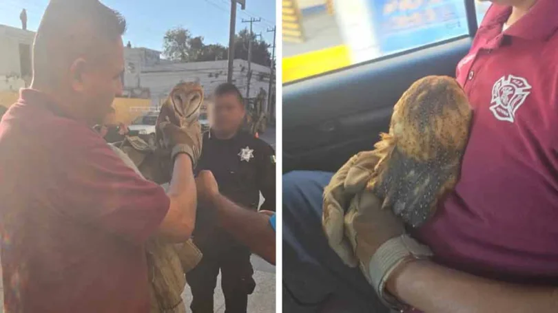 Ciudad Victoria, Tamaulipas. – Elementos del Cuerpo de Bomberos Victoria rescataron esta tarde una lechuza en la Plaza Juárez.