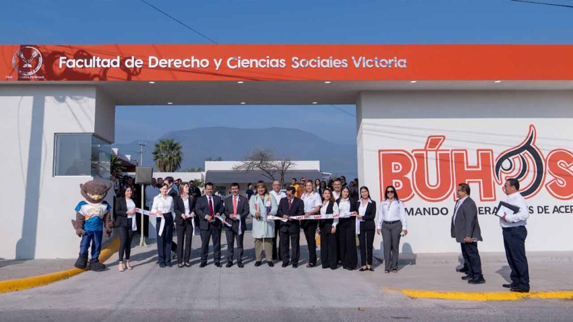 Cd. Victoria, Tamaulipas.- Reafirmando su compromiso con el crecimiento académico y la mejora de la infraestructura universitaria, el rector de la Universidad Autónoma de Tamaulipas (UAT), Dámaso Anaya Alvarado, recorrió la Facultad de Derecho y Ciencias Sociales Victoria (FDCSV), donde inauguró diversas obras y sostuvo un encuentro con la comunidad de esta casa de estudios.