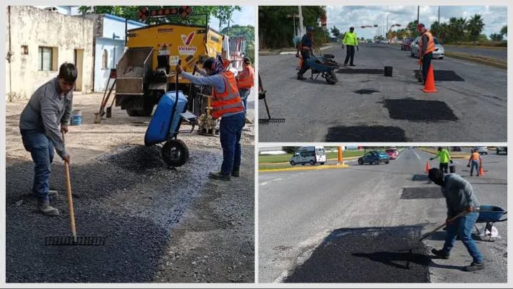 Ciudad Victoria, Tamaulipas . – Con trabajos de bacheo a doble turno, la Secretaría de Obras Públicas del gobierno de Victoria, avanzó en la recuperación de vialidades dañadas por las recientes lluvias en la ciudad.