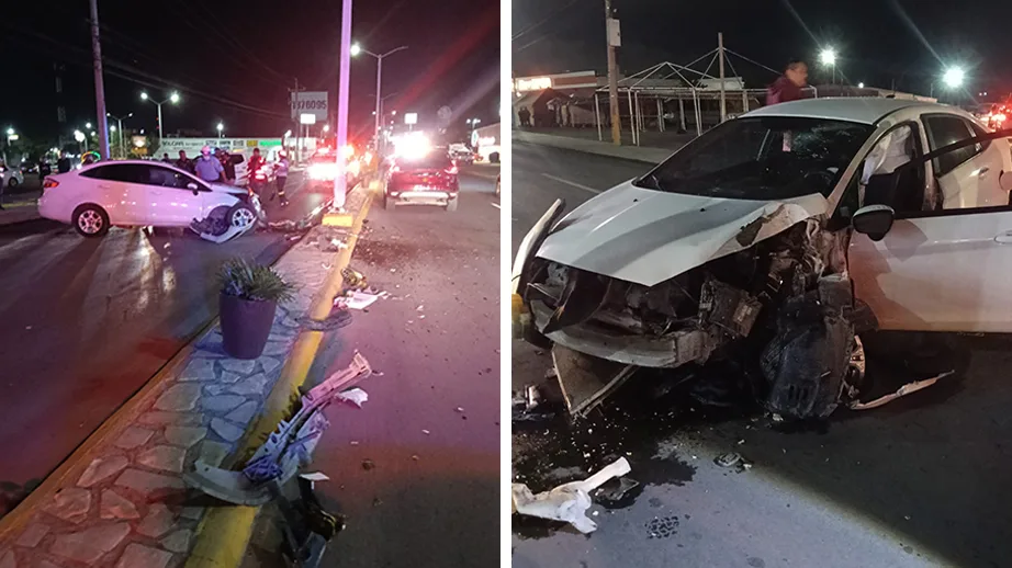 El accidente ocurrió la noche del sábado sobre el bulevar Allende, en el tramo comprendido entre los bulevares Cuco Sánchez y Primex, donde la unidad quedó con severos daños en la parte frontal tras el fuerte choque.