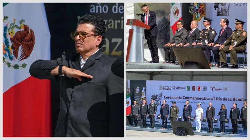 Desde el presídium, atestiguó el mensaje virtual de la presidenta Claudia Sheinbaum Pardo que dió desde el Campo Marte de la Ciudad de México, en el que afirmó que la bandera mexicana es un símbolo que une el pasado indígena, la lucha independentista y reconstrucción republicana en una imagen.