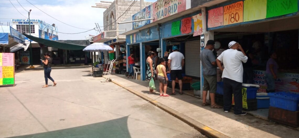 Altamira, Tamaulipas. Tras el término de la temporada de Cuaresma y Semana Santa, las ventas en el mercado de mariscos de la Puntillita registra una fuerte caída, pero esperan que en esta temporada de vacaciones de verano se recupere la situación.