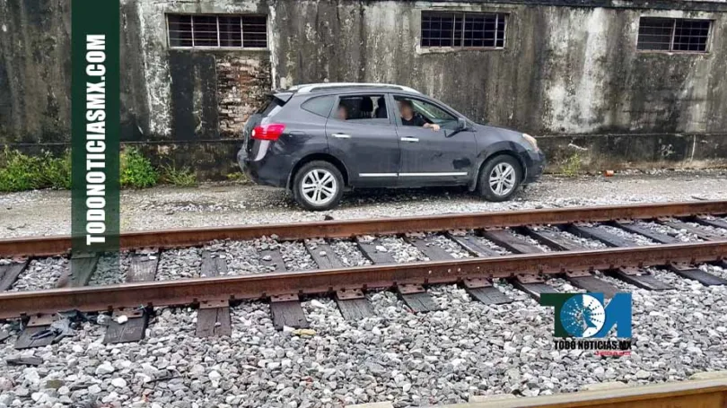 Tampico, Tamaulipas.- Minutos antes del mediodía de este miércoles, una conductora de una camioneta Nissan Murano, que viajaba con su familia, ingresó por accidente a las vías del tren dentro de las instalaciones del Sistema Portuario Nacional en Tampico.