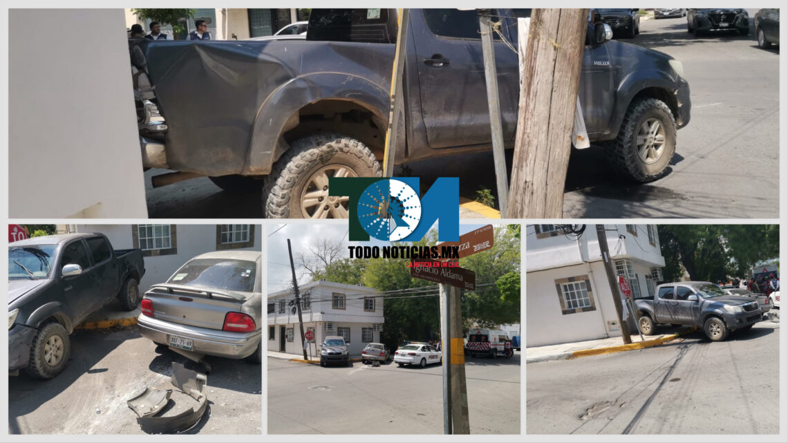 Ciudad Victoria , Tamaulipas.- Por ignorar una señal fija de alto el conductor de una camioneta doble cabina ocasionó un aparatoso percance vehicular en el 13 Aldama.