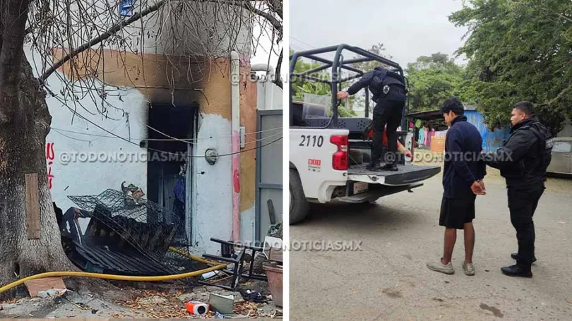 Elementos de la Guardia Estatal detuvieron a un joven que aparece como presunto responsable de incendiar de manera intencional la casa de sus abuelos.