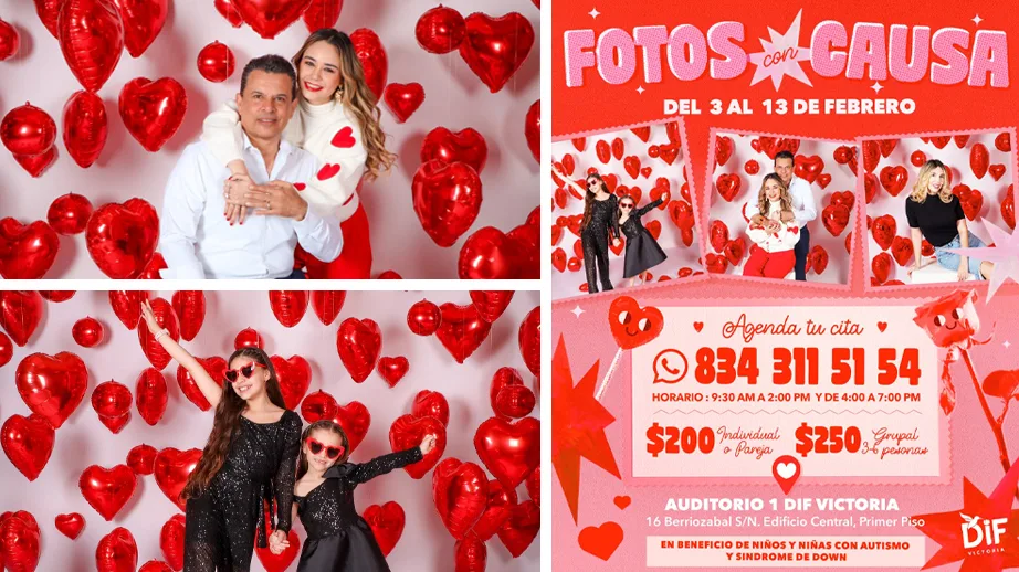 Del 3 al 13 de febrero, las personas podrán acudir con su pareja, familia o amigos y tomarse 3 fotografías profesionales de estudio en un set especial, ubicado en el Auditorio 1 del DIF Victoria, dentro del edificio central.
