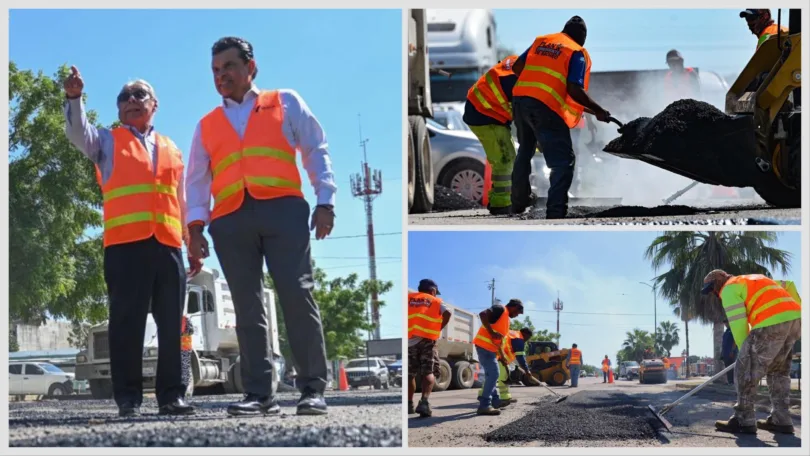 Los trabajos de restauración de pavimento dañado se realizaron del boulevard Práxedis Balboa a calle 16 de septiembre, donde las recientes lluvias y constante tráfico vehicular ocasionaron grave daño en la superficie de rodamiento en ambos sentidos de la avenida.