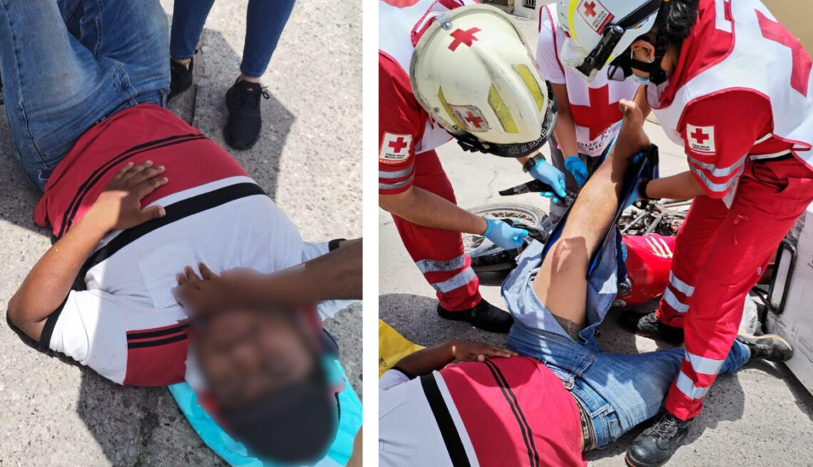 Como consecuencia del choque, el conductor de la motocicleta sufrió una posible fractura de tibia y peroné en su extremidad izquierda.