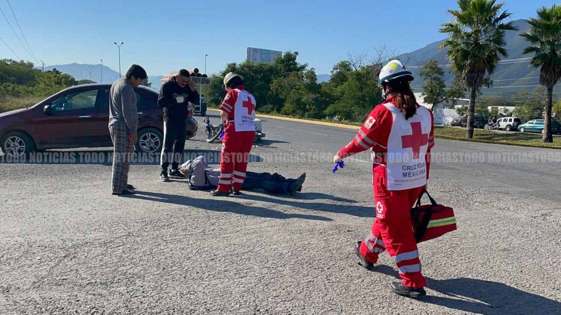 Ciudad Victoria, Tamaulipas.- Con golpes en diferentes partes del cuerpo y una lesión en la rodilla izquierda, resultó un repartidor después de estrellarse contra un automóvil que le cerró el paso en el libramiento Naciones Unidas.