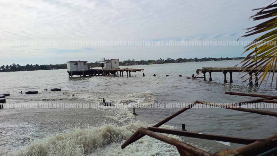 Autoridades señalaron que el colapso se atribuye al fenómeno conocido como mar de fondo, que incrementó el nivel del agua y generó un alto oleaje, debilitando la estructura del muelle.