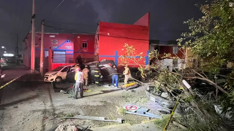 Tras desviarse de su trayectoria, el automóvil se estrelló contra varios vehículos que se encontraban aparcados sobre la vía pública y además colisionó contra la barda de un domicilio, causando severos daños. Entre las unidades afectadas se encuentran un Chevrolet color blanco, un Ford gris y una camioneta Ford Explorer.