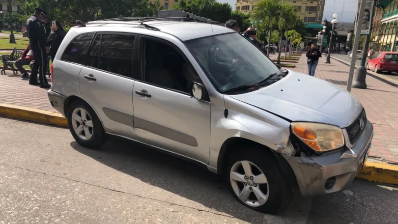 A consecuencia de los golpes, la unidad continuó desplazándose hasta subir al andador de la plaza pública, generando momentos de tensión entre peatones y automovilistas que transitaban por el sector.