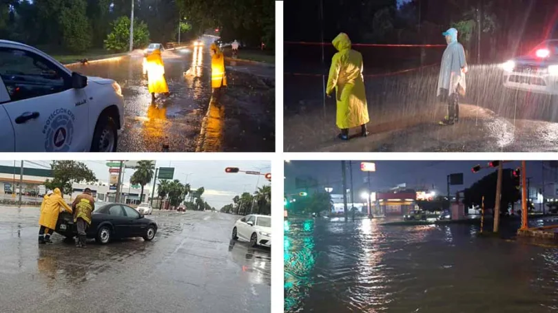 Ciudad Victoria, Tamaulipas. – Protección Civil de Victoria informó que se mantiene saldo blanco por la intensa lluvia que se registra en la ciudad, la cuál provocó rebase de limite de agua en cinco cruces viales del río San Marcos.