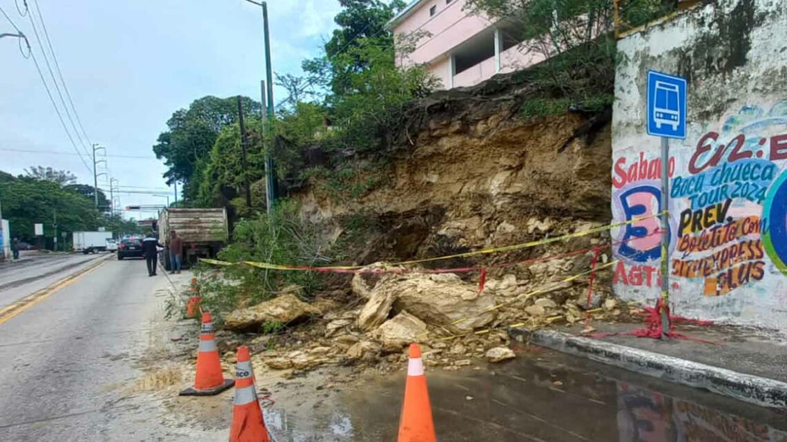 Al sitio acudieron agentes de vialidad y Protección de Tampico quienes acordonaron la zona para después solicitar maquinaria de Servicios Públicos para retirar las rocas y tierra que invadió uno de los carriles de norte a sur de la referida vialidad.