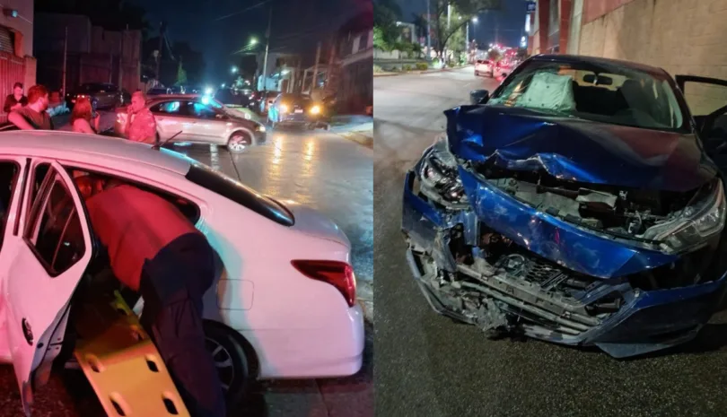 De acuerdo con el reporte de la Dirección de Tránsito, el percance se registró cuando un automóvil blanco, en el que viajaban las víctimas, fue embestido en su costado derecho por otro vehículo de color azul, cuyo frente quedó severamente dañado tras el impacto.