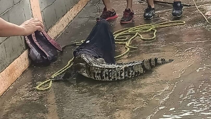 Armados únicamente con un mecate y un trapo, varios vecinos decidieron actuar de inmediato y, tras una tensa maniobra, lograron someter al reptil para evitar que causara algún incidente.