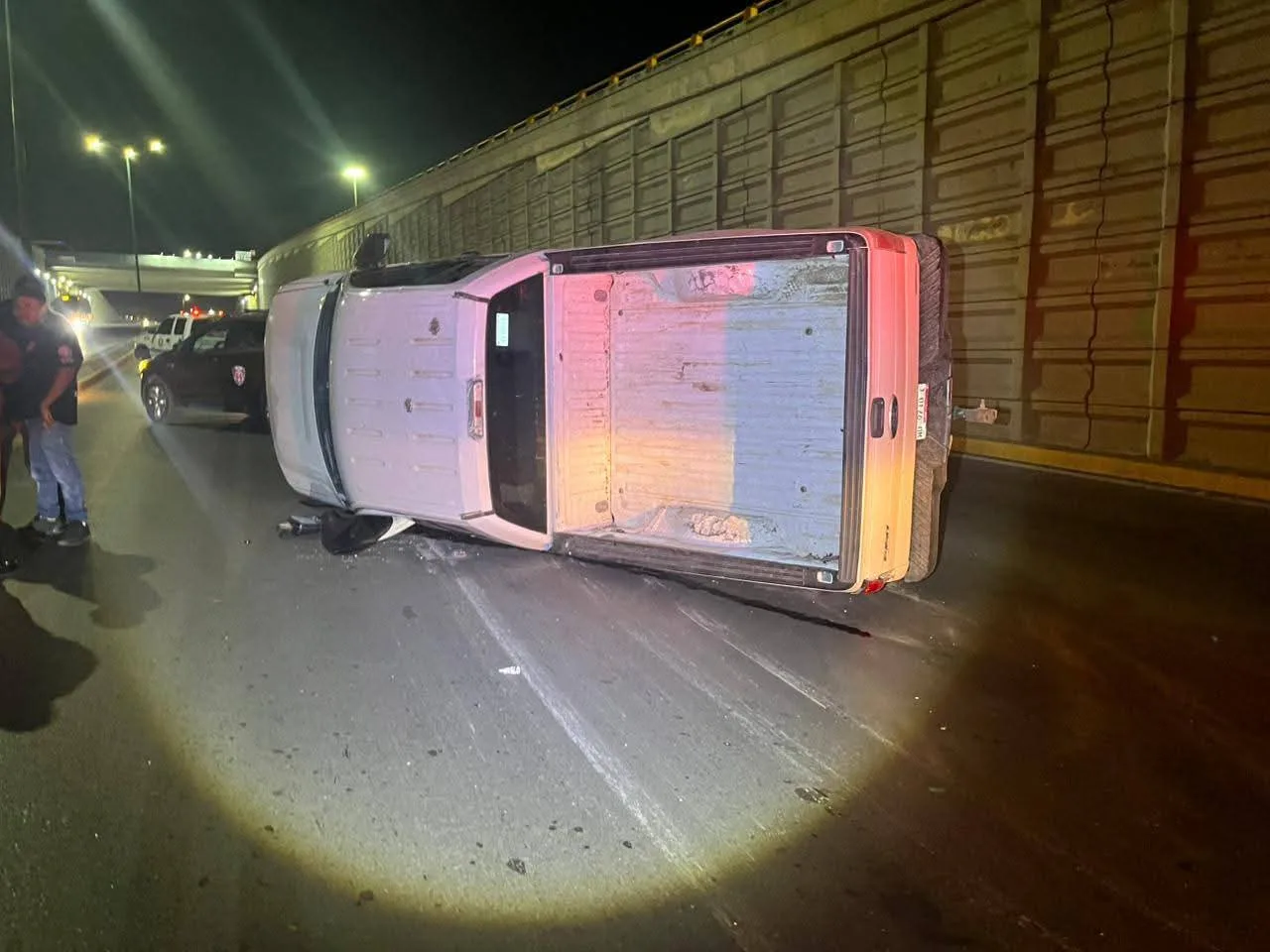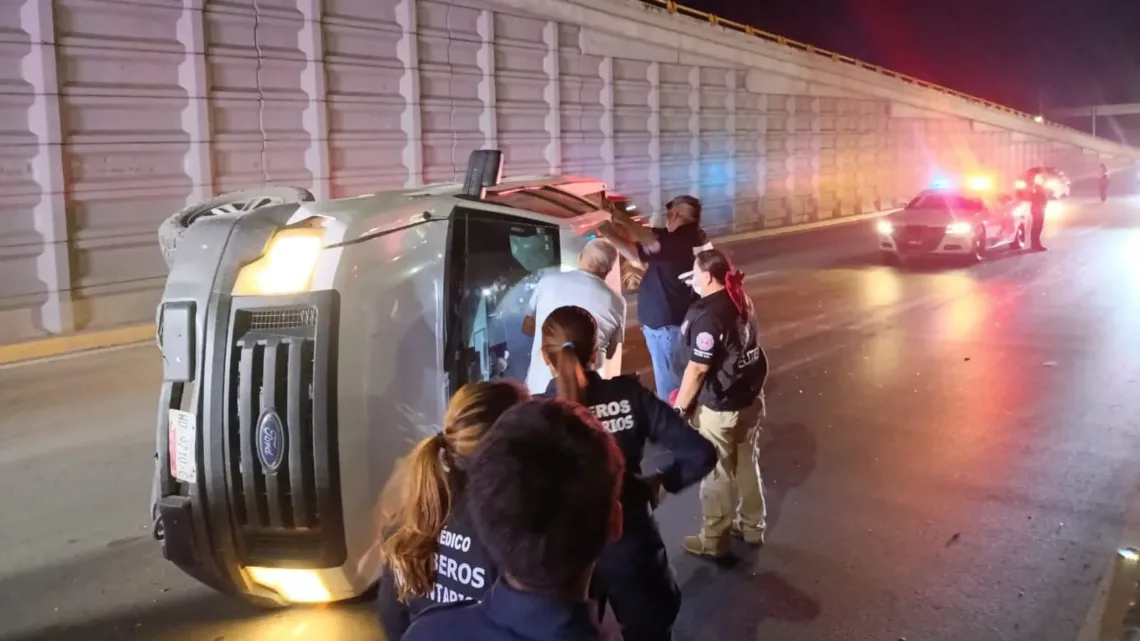 El percance se presentó minutos después de la medianoche, a la altura del paso a desnivel que conecta con el sector Arboledas, donde el conductor de una unidad tipo pick-up perdió el control tras presuntamente circular a exceso de velocidad, impactándose contra la guarnición del camellón central.