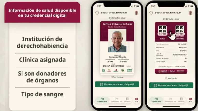 Eduardo Clark García Dobarganes, subsecretario de Integración Sectorial y Desarrollo de la Secretaría de Salud, explicó que la credencial concentrará los datos generales de cada persona, como nombre, edad, sexo y CURP, además de su expediente médico electrónico, lo que permitirá agilizar la atención y mejorar la toma de decisiones clínicas.
