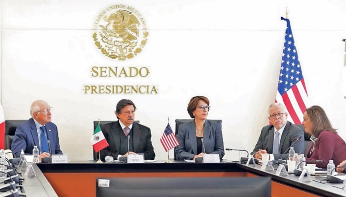 Durante una reunión con la Comisión de Trabajo y Previsión del Senado, que encabeza Napoleón Gómez Urrutia, la senadora morenista Lucía Trasviña le planteó al diplomático una petición y una advertencia: “Apóyenos, porque no queremos la ultraderecha que venga y nos enfrente con difamaciones y calumnias; no queremos que grupos de Estados Unidos sean los financieros de la ultraderecha, que fueron los protectores del crimen organizado; queremos salvar a nuestras naciones. Somos vecinos y lo que nos impacta a nosotros les impacta a ustedes directamente”.
