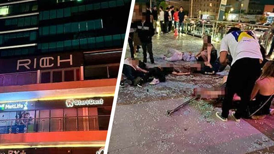 🔴(Preliminar) Mueren al menos 3 jóvenes y 16 resultan heridos al desplomarse desde el antro Rich, en el segudo piso de Plaza Alttus en #SanLuisPotosí, luego de que se venció un barandal, presuntamente por sobrecupo durante un evento del cantante #KevinMoreno. pic.twitter.com/nugAPfnx0z