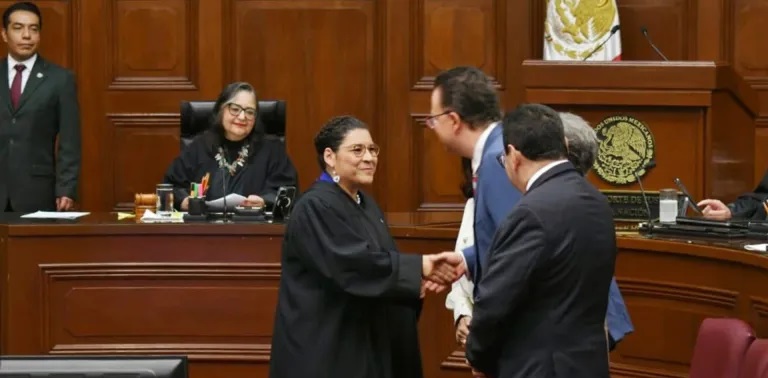 La presidenta de la Suprema Corte, Norma Lucía Piña, hizo entrega de la toga magisterial, así como de la credencial y del distintivo correspondiente a la nueva ministra Lenia Batres Guadarrama, con lo que, por primera vez, el Tribunal Pleno contará con la participación de cinco ministras.
