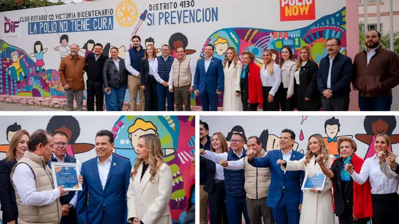 Ciudad Victoria, Tamaulipas. – El DIF Victoria, encabezado por su presidenta Lucy de Gattás, presentó en sus instalaciones el mural “End Polio Now”, realizado en colaboración con el Club Rotario Ciudad Victoria Bicentenario como parte de la campaña global de sensibilización sobre la importancia de la prevención y la vacunación contra la poliomielitis.