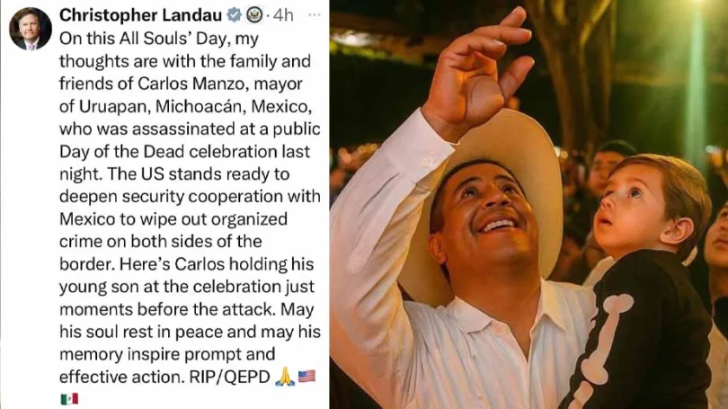 El subsecretario de Estado y exembajador estadounidense en México, Christopher Landau, lamentó el hecho a través de sus redes sociales y envió sus condolencias a la familia del edil. “Mis pensamientos están con la familia y amigos de Carlos Manzo… que su memoria inspire acciones rápidas y efectivas”, escribió. Además, reiteró que Washington está dispuesto a profundizar la cooperación bilateral en materia de seguridad para enfrentar a los grupos criminales que operan a ambos lados de la frontera.