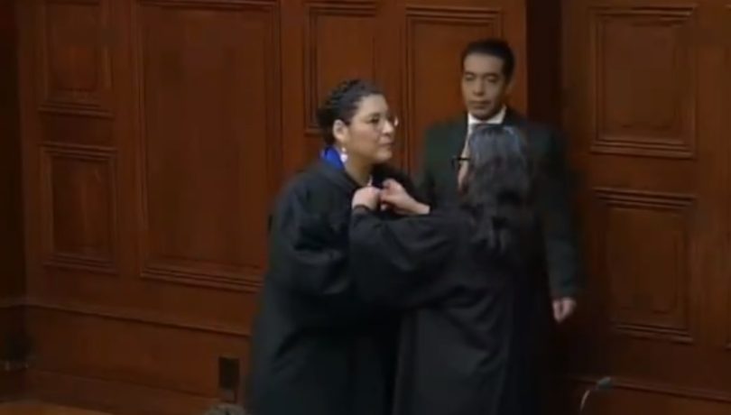 Fue la propia ministra presidenta de la Suprema Corte quien le colocó la toga magisterial y la credencial como nueva integrante el Máximo Tribunal en México.