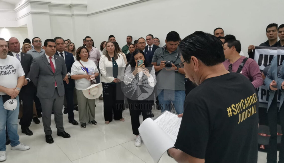 El posicionamiento se dio después que trabajadores del Poder Judicial de la Federación llevaron a cabo una marcha por el Bulevar Praxedis Balboa para llegar a la sede del Poder Judicial del Estado.