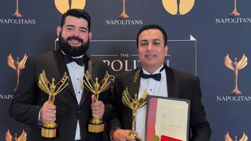 Tampico, Tamaulipas.- Los consultores tamaulipecos Álvaro Balderas y Erik Nájera, fundadores de la firma Solid Media, obtuvieron tres de los cuatro galardones para los que fueron nominados en los Napolitans Victory Awards 2025, conocidos como los premios más prestigiosos del mundo en consultoría política; el reconocimiento es otorgado por The Washington Academy of Political Arts & Sciences.