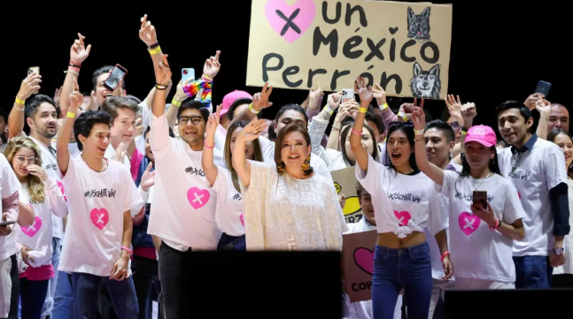 Xóchitl se dejó querer por quienes a su paso le pidieron selfies, fotos y hasta mensajes en vídeo, y minutos después subió al escenario para iniciar su mensaje de 37 minutos en el que llamó a salir a votar para derrotar al régimen actual.