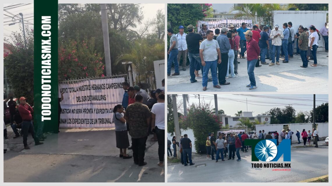 “Apoyo total a nuestros hermanos campesinos del sur de Tamaulipas, justicia no será pronta y expedida cuando se suman los expedientes de un tribunal a otro”, se manifiesta en una lona colocada en el acceso al Tribunal que se encuentra sobre la calle Ocho o Bulevar Tamaulipas y Primera Diagonal.